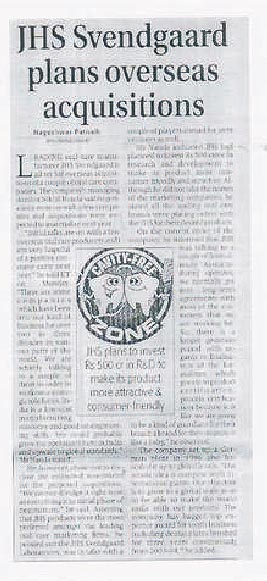 Leading oral care manufacturer JHS Svendgaard is all set for overseas acquisitions of a couple of oral care companies. The company managing director Mr. Nikhil Nanda said negotiations were on with a few companies and acquisitions are expected to materialize next year. Initial talks were on with a few oral acre overseas producers and hopeful positive results are expected.